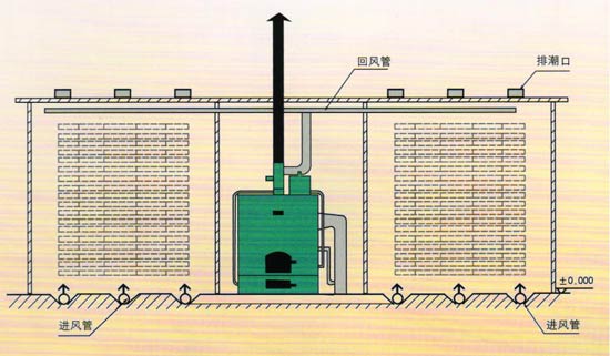 熱風(fēng)式干燥設(shè)備工作原理是利用燃燒產(chǎn)生的熱能,加熱窯內(nèi)的空氣,由熱風(fēng)爐頂部主風(fēng)機(jī)將窯內(nèi)的空氣通過(guò)管道吸入爐體,將空氣加熱。再通過(guò)管道,送入窯內(nèi),由窯內(nèi)的循環(huán)風(fēng)機(jī)不斷的循環(huán)對(duì)窯內(nèi)的木材均勻加熱。木材干燥過(guò)程中如需要蒸汽,可由熱風(fēng)爐內(nèi)的蒸汽發(fā)生器提供,如果是一爐兩房或多房時(shí),管道上裝有插閥,通過(guò)插閥的調(diào)節(jié)來(lái)控制窯內(nèi)的溫度。在干燥的過(guò)程中,由于木材要進(jìn)行排濕,在窯頂上留有排濕孔(根據(jù)地區(qū)而定)和裝有抽濕機(jī),用來(lái)調(diào)節(jié)排濕的快慢.